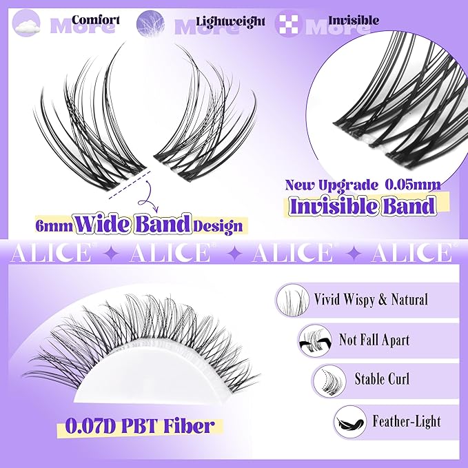 • "ALICE: Elegance in Every Blink": With ALICE Natural Lash Clusters, you're not just wearing lashes; you're making a statement. The invisible band ensures your look is seamless and sophisticated.