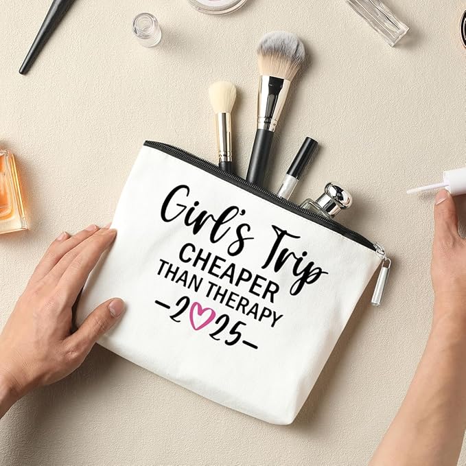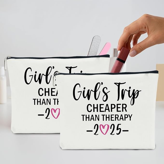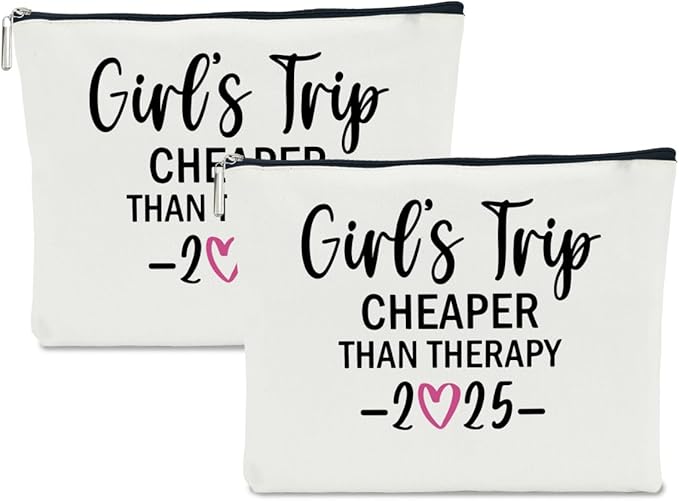 2 PCS Girls Trip Favors - 2025 Girls Weekend Gifts for Women Bestie & Friend Gifts - Sister & Her Best Friend Friendship Holiday Vacation Makeup Bag & Weekend Bags