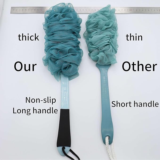 - Back Scrubber For Shower: Back Scrubber For Shower Non-slip design, Bath Loofah With Non-slip long handle, the handle will not slide when wet and soapy