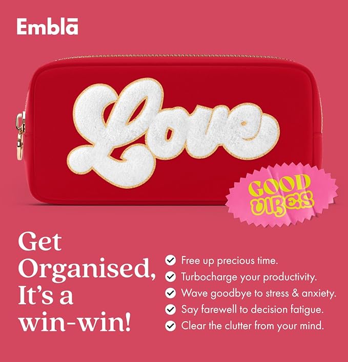 • GIVE THE GIFT OF LOVE AND FASHION with Embla’s new mini cosmetic pouches with chenille patches that express your affection including checkered hearts, XOXO, LOVE, and BE MINE. Ideal present for wife, girlfriend, mom, grandmother, daughter, bridesmaids, teachers, cheer teams, Valentine's Day, Mother's Day, Anniversaries, or Birthdays. Available in Flamingo Pink, White and Ruby Red.