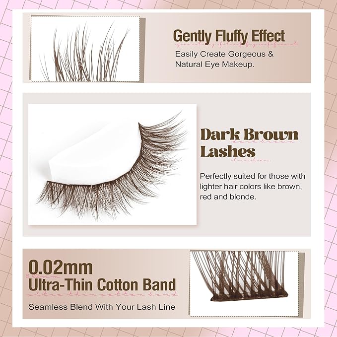- Comfortable, Durable, and Reusable Design: Lightweight and soft, these brown cluster eyelash extensions are comfortable to wear all day. Eyelash individuals are crafted from high-quality materials to resist shedding and deformation, allowing for multiple uses with proper care.