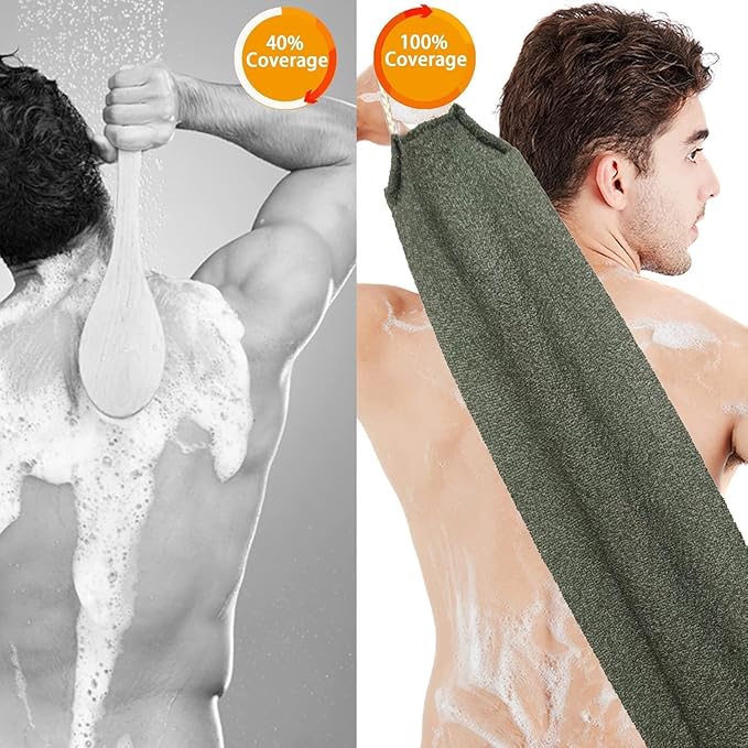 - [Light and durable Washing Back Scrubber Cloth] Measuring 7.28 "x 18.11", these back exfoliating scrubber towels have a quick-drying quality and are also easy to put away for the demands of everyday life or for travel/business,easy to carry.