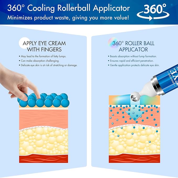 5% Caffeine Eye Cream for Women, Under Eye Serum for Dark Circles Puffiness Fine Lines Wrinkles with 360° Roller Massage Ball, Morning Night Skin Care, 0.5 Fl Oz