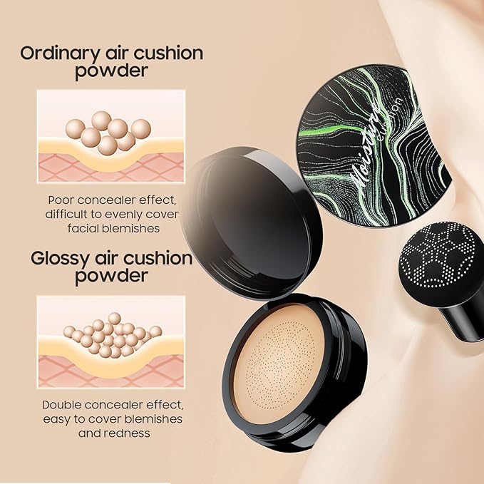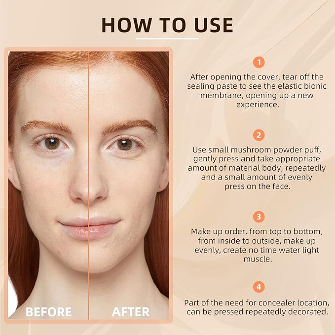 - 【Long Lasting Concealer】The cushion foundation uses a skin-friendly elastic bionic film. The soft bionic film presses out an even and smooth foundation makeup to create a full coverage foundation. Brightens skin tone, hides blemishes, pores, and acne marks. It has a 24-hour concealer effect, does not clog pores, and is delicate, comfortable and breathable.