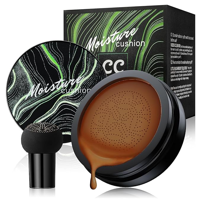 Mushroom Head Air Cushion CC Cream - BB Cream Foundation Makeup Concealer Moisturizing Oil Control, Long-Lasting & Waterproof, Easy Makeup Even Skin Tone (Deep, 3.21 Ounce (Pack of 1))