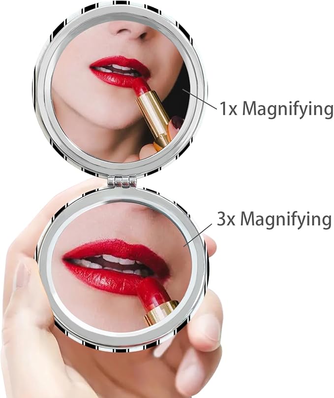 - 【 Mini Magnifying Mirror 】 Double sided mirror magnifies 1x and 3x respectively. The main mirror can clearly see the whole face, and the 3x magnifying mirror is suitable for applying eye black, plucking hair, flossing, etc. If you need a travel mirror with other magnification, you can find a 2x or even 10x magnifying mirror in our store, please contact us.