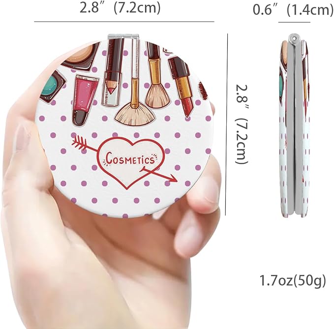 - 【 Dimensions 】This round folding travel mirror is compact and exquisite, with a circular diameter of 2.8 inches and a thickness of 0.6 inches, and the weight is only 1.7oz. This travel size mirror is perfect for travel makeup mirror, pocket mirror for women, pocket mirror for men, mirror for purse, camping mirror.