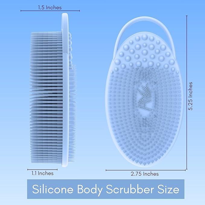 Avilana Style 2 Silicone Body Scrubber (Blue) + Gentle Face Scrubber (Blue) | Quick-Dry, Hygienic Shower Set for Daily Full-Body Cleansing, Exfoliation & Smooth Skin