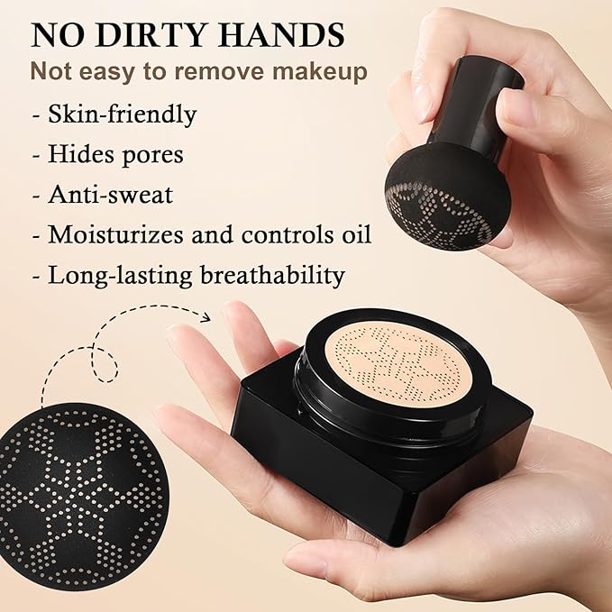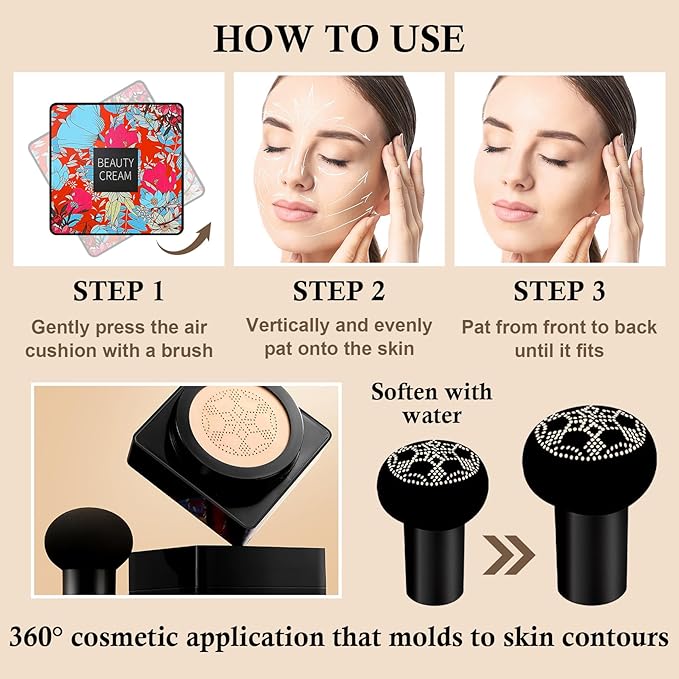 - Easy to Use: Cushion foundation comes with a mushroom head puff and makeup sponge, which can make foundation more skin-friendly, more adhering, and not easy to get dirty hands, convenient for you to make up at any time
