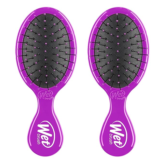 Wet Brush Mini Detangler Hair Brush, Purple, Detangling Travel Hairbrush, Ultra-Soft IntelliFlex Bristles Glide Through Tangles with Ease, Pain-Free, All Hair Types (2 Pack)