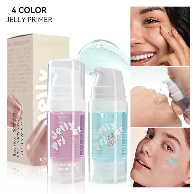 - Hydrating Jelly Primer β This lightweight primer provides 12-hour hydration, keeps makeup long-lasting, and creates a smoother appearance, it absorbs quickly for hydration.