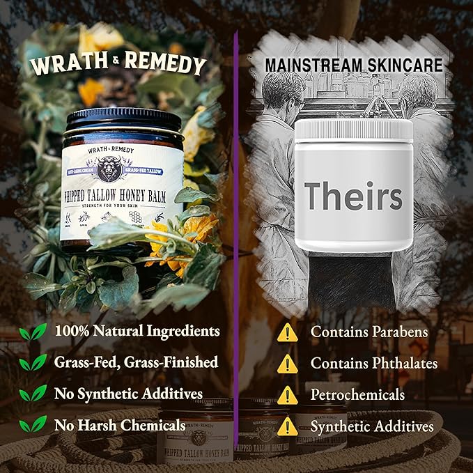- π§ SKINCARE, AS GRANDMA INTENDED: Experience the charm of traditional skincare with our whipped tallow honey balm. Like grandma's time-tested method, this balm uses rendered beef fat to deliver powerful moisturizing and soothing benefits. Our contemporary whipped balm offers a luxurious touch that honors the past
