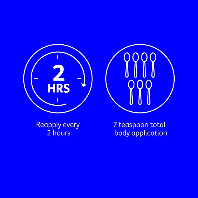 - HOW TO APPLY: Apply generously to clean, dry skin 20 minutes before sun exposure. Use approximately 1 teaspoon per body part (arms, legs, face, torso) for full coverage. Reapply every 2 hours or after swimming, sweating, or towel drying.