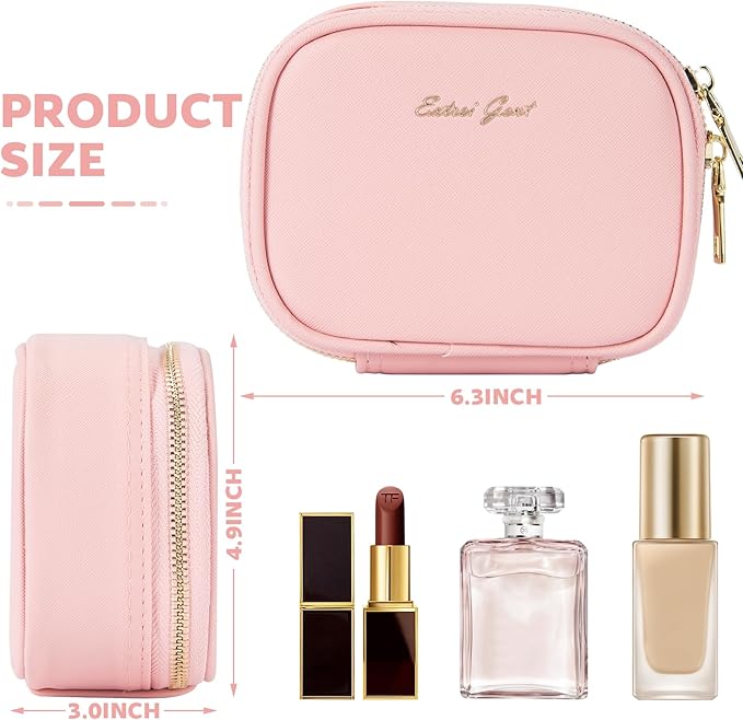 - 【Mini Makeup Bag】This 6.3 x 4.9 x 3.0 inches Mini makeup bags, mini size, easy to carry around, make up at any time,Great to carry in your purse work bag or gym bag,please look at the size, it is a Small model Oh!