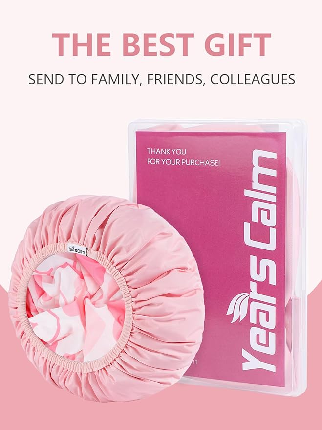 Years Calm Shower Caps For Women Reusable Waterproof,Pattern And Solid Color Dual-Layer Design For Dual-Layer Usable,Protects Hair In Shower, Spa, Cooking, Clean & Travel (Pink, Extra Large)