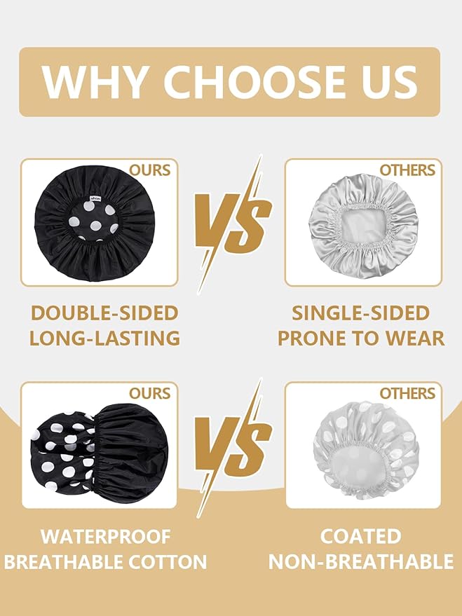 - 【Keeps Hair Dry And Clean】This Shower Cap Is Made Of Waterproof Cotton. Unlike Traditional Shower Caps, Which Use Polyester Fiber And Coated Water Resistant Treatment, Our Waterproof Cotton Material Effectively Blocks The Penetration Of Liquid Water, Ensuring That Your Hair Stays Dry And Clean, While Maintaining Air Permeability Without Affecting Comfort, Making It Ideal For Everyday Use