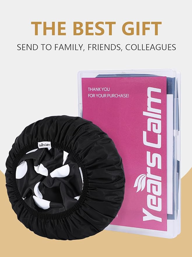 Years Calm Shower Caps For Women Reusable Waterproof,Pattern And Solid Color Dual-Layer Design For Dual-Layer Usable,Protects Hair In Shower, Spa, Cooking, Clean & Travel (Black, One Size)