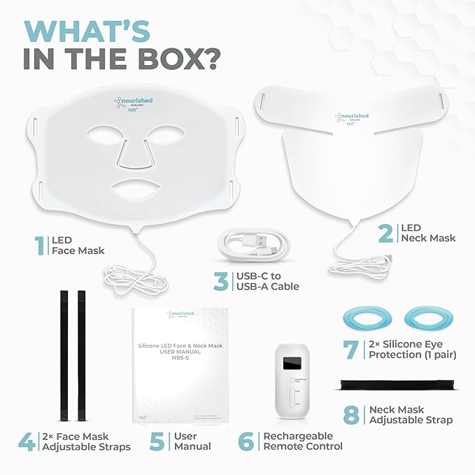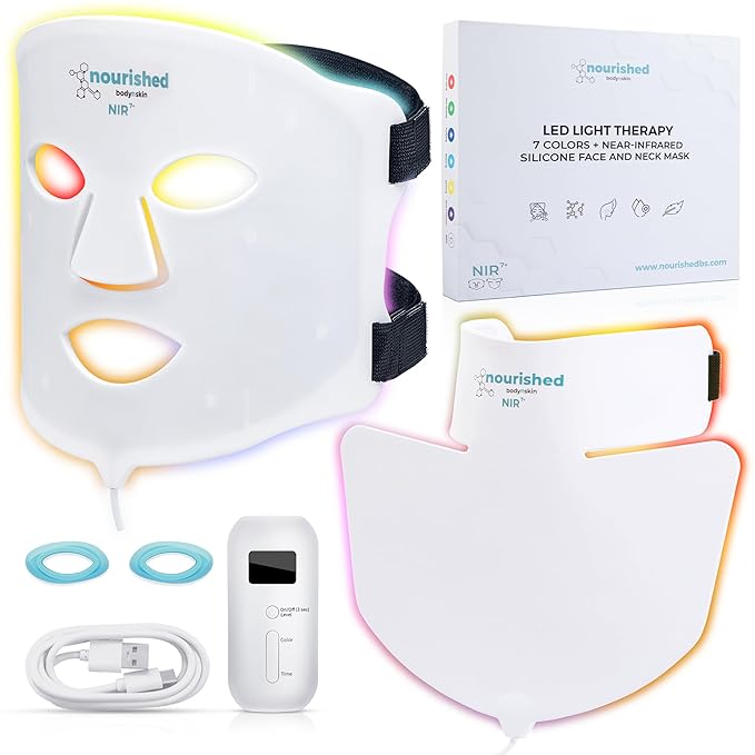 - 7-Mode Near-Infrared Light Therapy Mask Set: Features seven colors like red and blue lights, each added with NIR for deeper skin rejuvenation, offering high-precision LEDs with 35 mW/cmΒ² irradiance