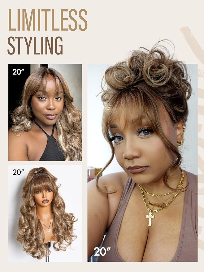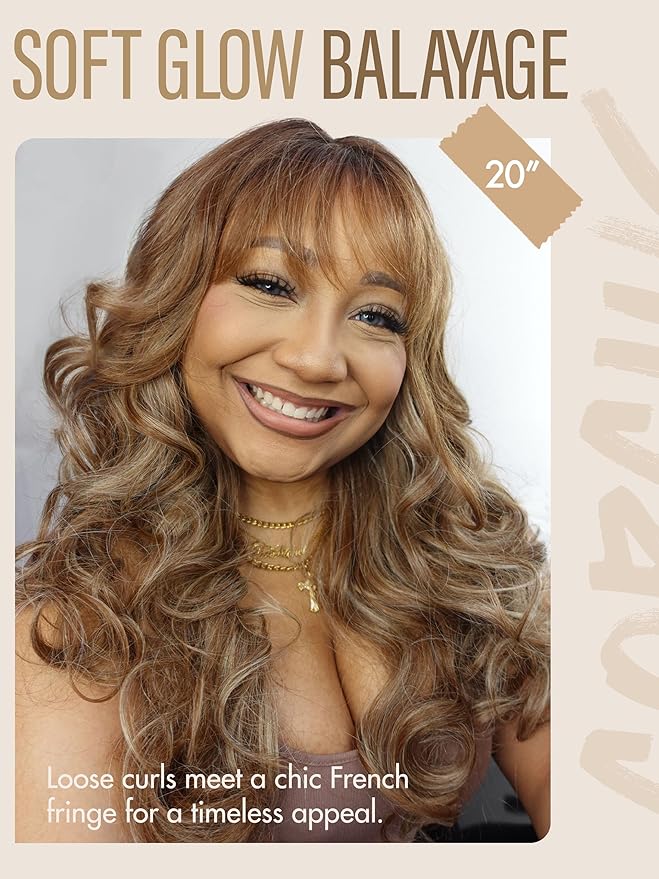 - Glueless & Beginner-Friendly – No glue, no lace, no hassle! This wavy wig with curtain bangs is easy to install and perfect for beginners. Just put it on and go!