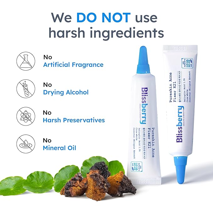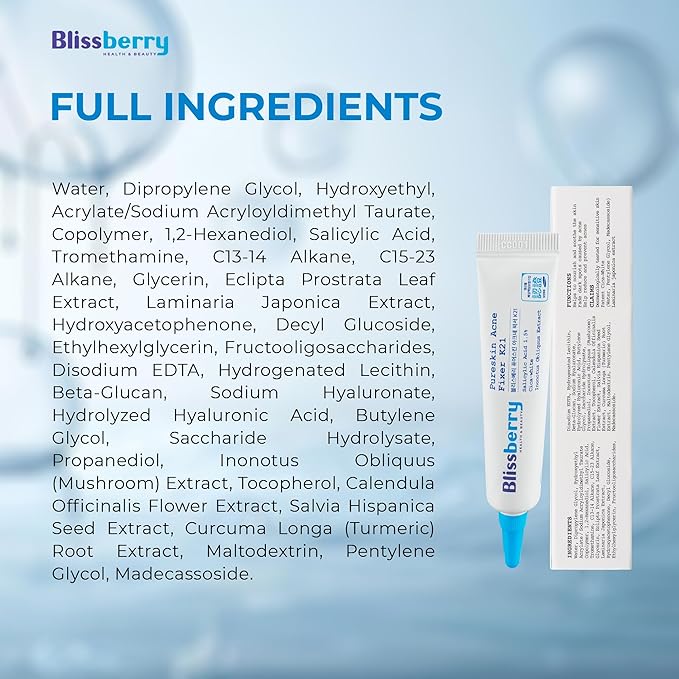 Blissberry Acne Gel - 1.5% Salicylic Acid, Acne Spot Gel For Blackheads & Whiteheads, Unclog Pores and Promote Pimple Healing, Alcohol Free & Oil Free, 0.5 Fl Oz
