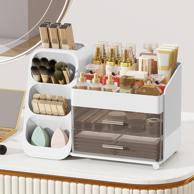 Makeup Organizer with Drawers for Vanity, Make Up Storage Kit, Spacious Cosmetic Display Case, Perfect Storage Solution for Beauty Essentials (White)