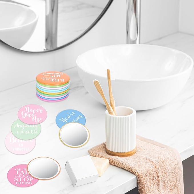 - PASTEL DESIGN: The back of our mirrors is designed with motivational words, and come with candy colors, making them look lovely and inspiring, a nice decoration for your outfits which will nicely increase the fun atmosphere