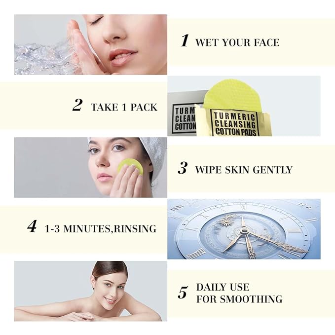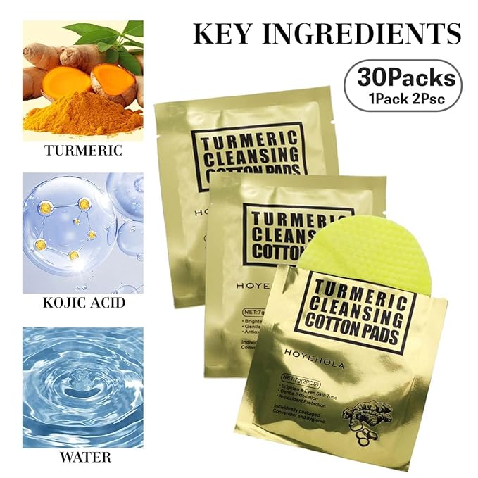 - Ready-to-Use Design: The compact and lightweight packaging makes them ideal for use at home, at the gym, or during your travels. Whether you're on the go or skincare routine, our turmeric cleansing pads are always ready to offer you a convenient and effective cleansing experience