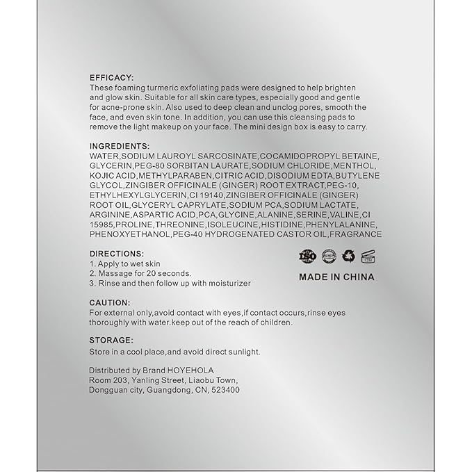 - Deep Cleansing: Each pad is infused with turmeric and gentle exfoliating ingredients to effectively remove dirt, excess oil, and daily buildup. It helps refine pores and smooth your skin, leaving it refreshed and revitalized (Unsuitable for sensitive skin)