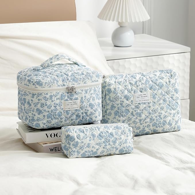 - [Fashionable Design]: This cute quilted bag features a floral pattern, the stylish design makes these makeup bags a fashionable accessory, suitable for both your everyday makeup routine and special occasions, allowing you to showcase your personal style. This is a perfect present for friends, girlfriends, bridesmaids, family, bridesmaids and colleagues.