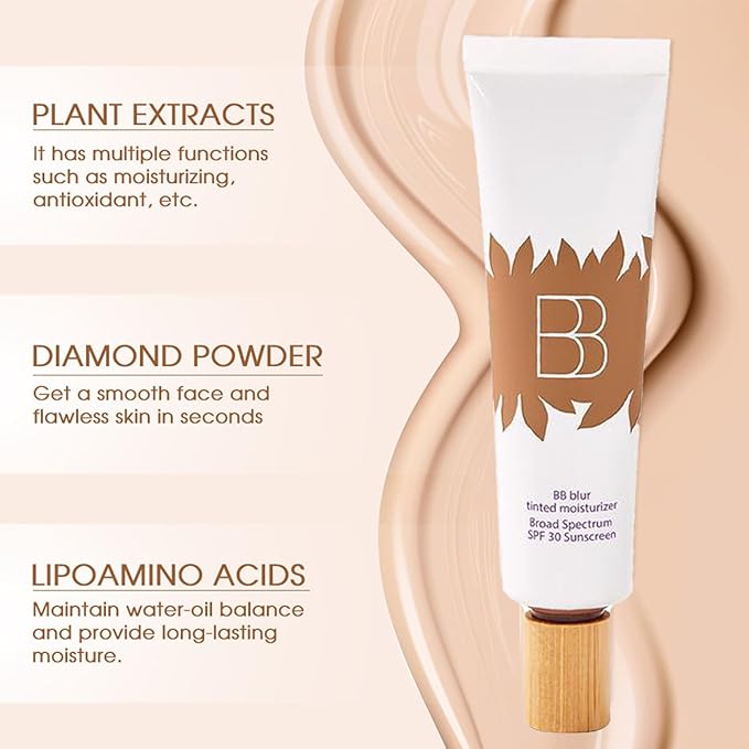 - 【Broad Spectrum SPF 30】 Our bb cream tinted moisturizer with spf 30 protects against UVA/UVB rays while blurring imperfections, hydrating, and enhancing skin tone for a natural look. The lightweight formula blends seamlessly for a flawless, sun-safe finish.