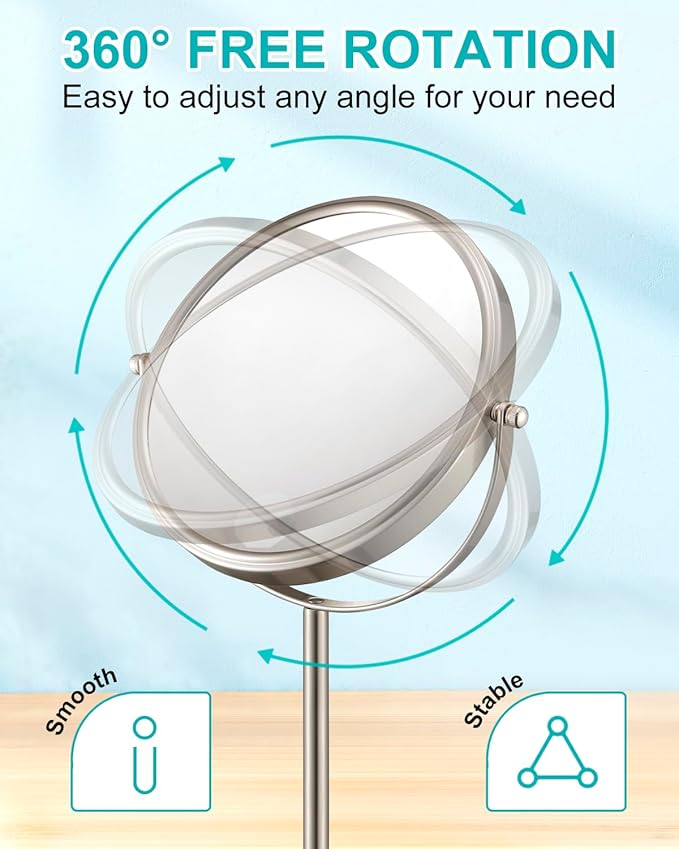 - Large Size & 360Β° Rotation - Upgraded 8 inch round makeup mirror face, easier to see your whole face clearly. The makeup mirror for desk can be rotated 360 degrees, you can swivel to each side easily without any noise, also helps you get your ideal angle and steady in position.