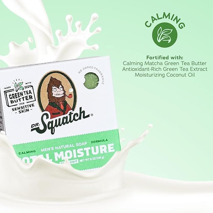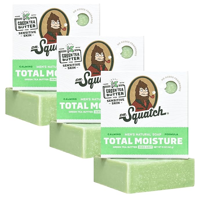 Dr. Squatch NEW Total Moisture Bar Soap for Men - No Added Fragrance Formulated for Sensitive Skin - Green Tea Butter (5 oz, 3-pack)