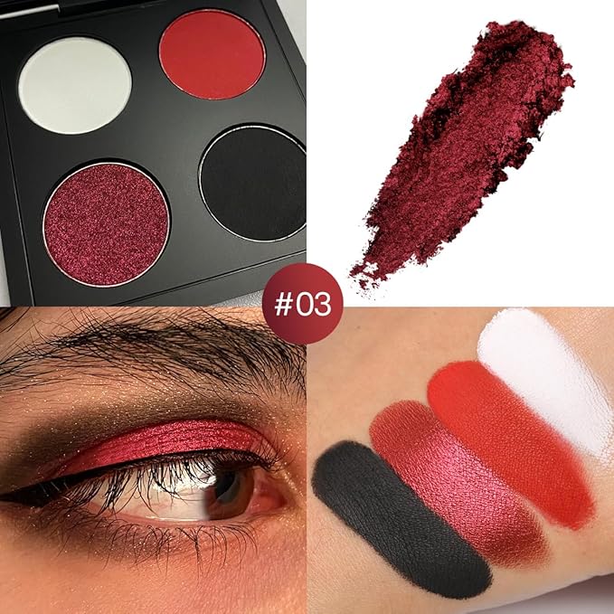 • 🖤❤️VERSATILE PALETTE: Four-shade eyeshadow palette featuring matte white, matte red, ultra-pigmented chrome red, and matte black for creating dramatic gothic looks