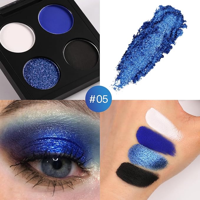 • 🖤💎VERSATILE PALETTE: Features 4 complementary shades including matte white, royal blue, sparkling blue glitter, and deep black for creating dramatic eye looks