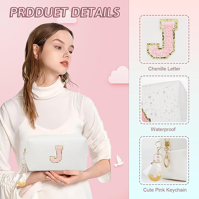 - 【HIGH QUALITY MATERIAL】: The cosmetic bag is made of high quality PU leather, which is not only waterproof and scratch-resistant, but also durable. You can travel with your cosmetics or toiletries in this bag without worrying about damage to your items. The monogrammed metal keychain pull ensures that your belongings are kept safe and organized inside the bag. This makeup bag is also easy to clean and can be easily wiped clean with a damp cloth.