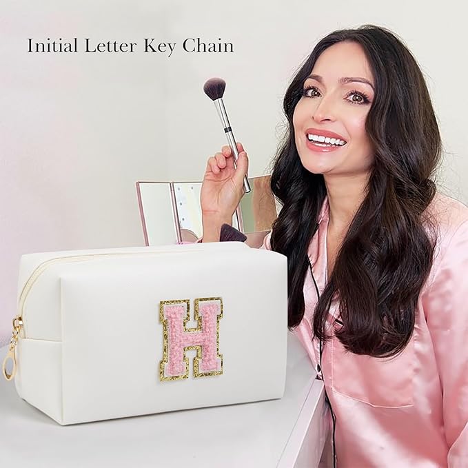 - 【HIGH QUALITY MATERIAL】: The cosmetic bag is made of high quality PU leather, which is not only waterproof and scratch-resistant, but also durable. You can travel with your cosmetics or toiletries in this bag without worrying about damage to your items. The monogrammed metal keychain pull ensures that your belongings are kept safe and organized inside the bag. This makeup bag is also easy to clean and can be easily wiped clean with a damp cloth.