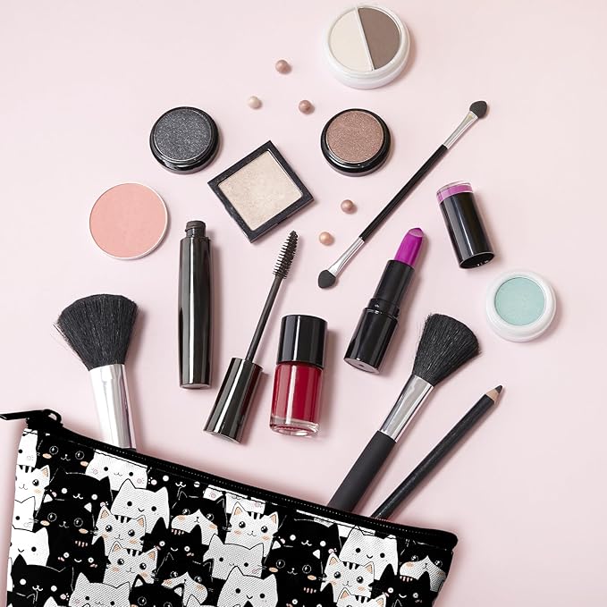 Cute Cat Makeup Bag for Purse - 2 Pcs Travel Bags Cosmetic Bag for Women Makeup Organizer Zipper Pouch for Travel Essentials