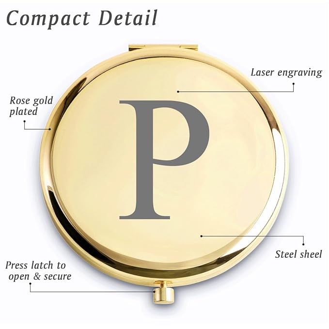 Personalized Gifts for Women Girls, Initial Compact Mirror, Unique Mothers Day Birthday Gifts for Friends Mom Wife Grandma Sister Daughter, 2025 Graduation Gifts for Her College Medical High School