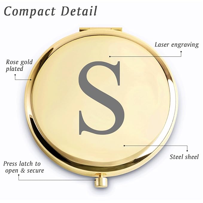 Personalized Gifts for Women Girls, Initial Compact Mirror, Unique Mothers Day Birthday Gifts for Friends Mom Wife Grandma Sister Daughter, 2025 Graduation Gifts for Her College Medical High School