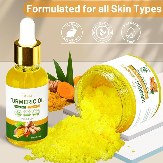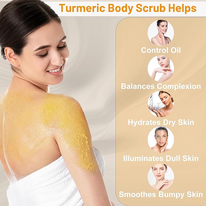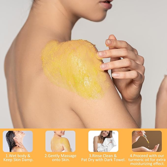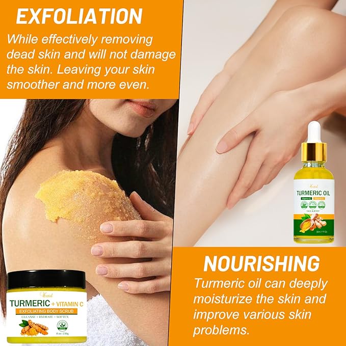 Turmeric Body Scrub Tumeric Oil Set, Natural Soothing Remove Dead Skin For Body, Face, Hand, Foot, Skincare Bikini Private Area, Smooth Hydrating Exfoliating Scrub Suitable for All Skin Types