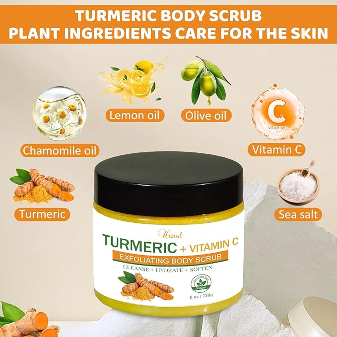 - ππππ πππ πππ-πππππππππποΌRough exfoliators not only irritate the skin but also damage the skin barrier, leaving your skin damaged. Our turmeric body scrub is mild and non-irritating. The natural and delicate scrub particles help you exfoliate without damaging the skin barrier. At the same time, it is added with nourishing ingredient to keep your skin hydrated