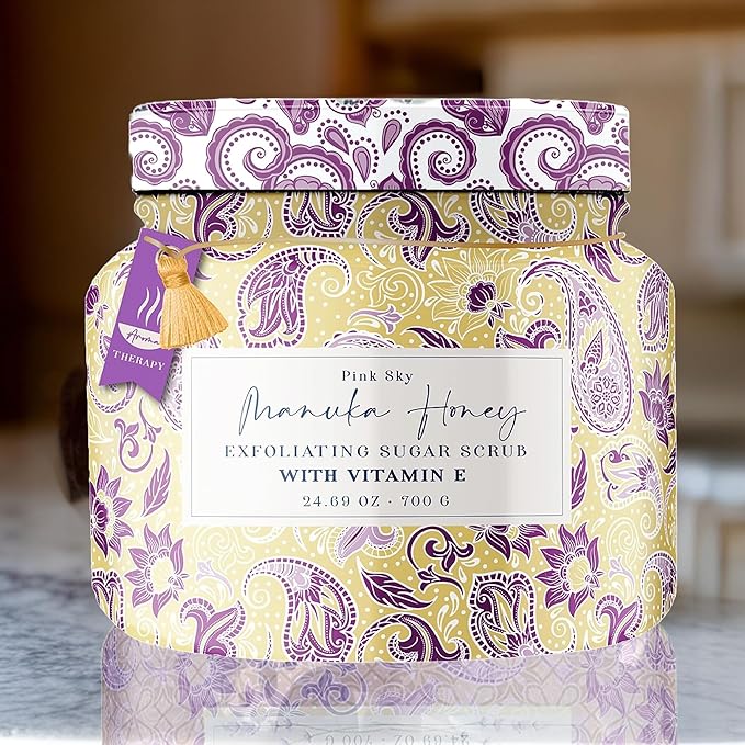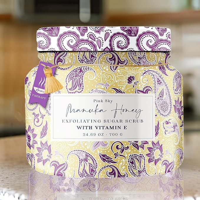 Pink Sky Exfoliating Body Scrub - Ultra Gentle Sugar Scrub for Smooth Skin - Premium Body Scrubs for Radiant, Soft Skin - Ideal Exfoliator for All Skin Types - 700g (Manuka Honey, 24.69 Oz)