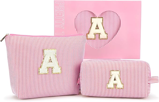 2 PCS Initial Makeup Bags for Women: Cosmetic Bag for Travel Toiletry - Birthday Gifts for 11 12 13 14 15 16 17 18 Years Old Girl Graduation Teacher Gift- Teen Girl Gifts Trendy Stuff - Pink O