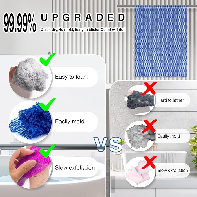 - 【Long-Lasting & Quick-Dry Material】Crafted from high-quality nylon, our sponge is machine-washable, lightweight, and dries rapidly thanks to its porous design. Resistant to wear, it generates rich lather and lasts longer than traditional bath cloths.