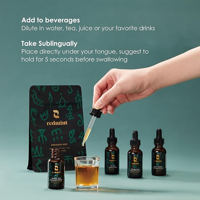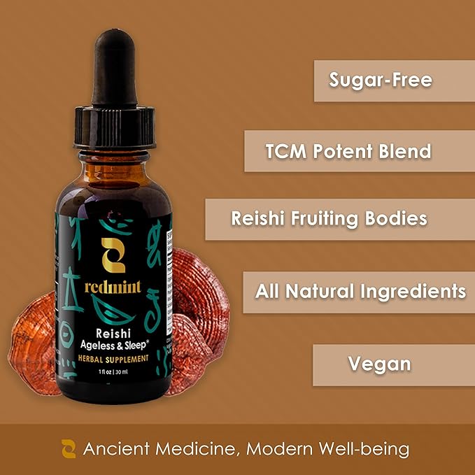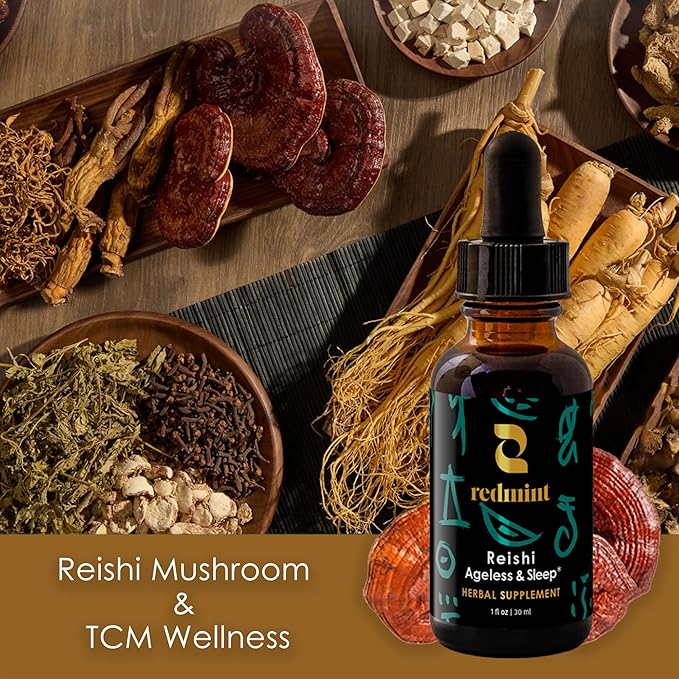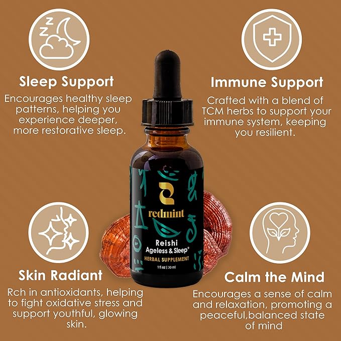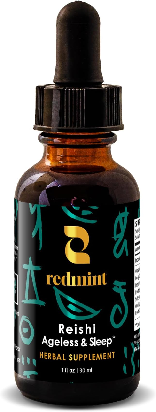 Redmint Reishi Mushroom Herbal Tincture - Ageless & Sleep | Natural Mushroom Supplement with TCM Herbs Dong Quai, Schisandra for Restful Sleep, Immune Support, Relaxation,Skin Health| 1 fl oz