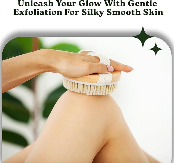 - DURABLE AND SKIN-FRIENDLY DESIGN: Crafted with high-quality boar bristles, this bristle brush delivers reliable exfoliation without shedding or irritating your skin. The bristles are soft but sturdy enough to stimulate circulation, cleanse pores, and improve skin texture. Enjoy a natural, spa-like treatment with dry exfoliating brush thatβs effective and kind to your skin.