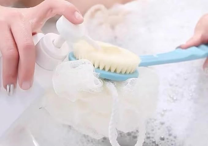Long Handle Bath Brush with Loofah, 2-in-1 Design, Soft and Clean
