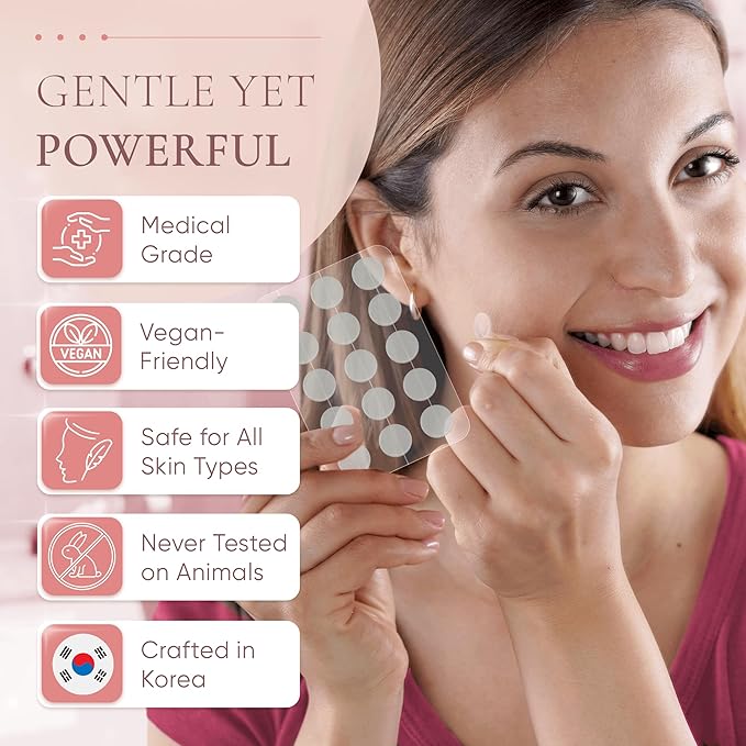 • Seamlessly Blends with Skin: - Discreet Acne Treatment for All Skin Tones: Thin and clear, these patches blend effortlessly with all skin tones for discreet spot treatment anytime, anywhere.