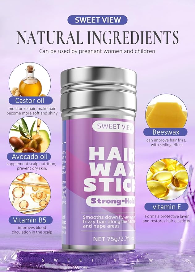 - HEALTHY & GENTLE - Hair Wax Stick is a milky white solid, purely plant-based ingredient containing castor oil, beeswax, avocado oil and vitamin E. It is healthy and gentle, leaving hair smooth and silky.