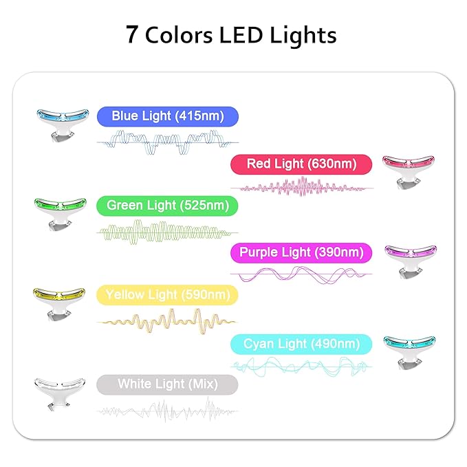 • Upgraded Technology: The 7 in 1 facial massager has three modes and 7 colors of light, suitable for all skin types, perfect for your daily skin care routine.